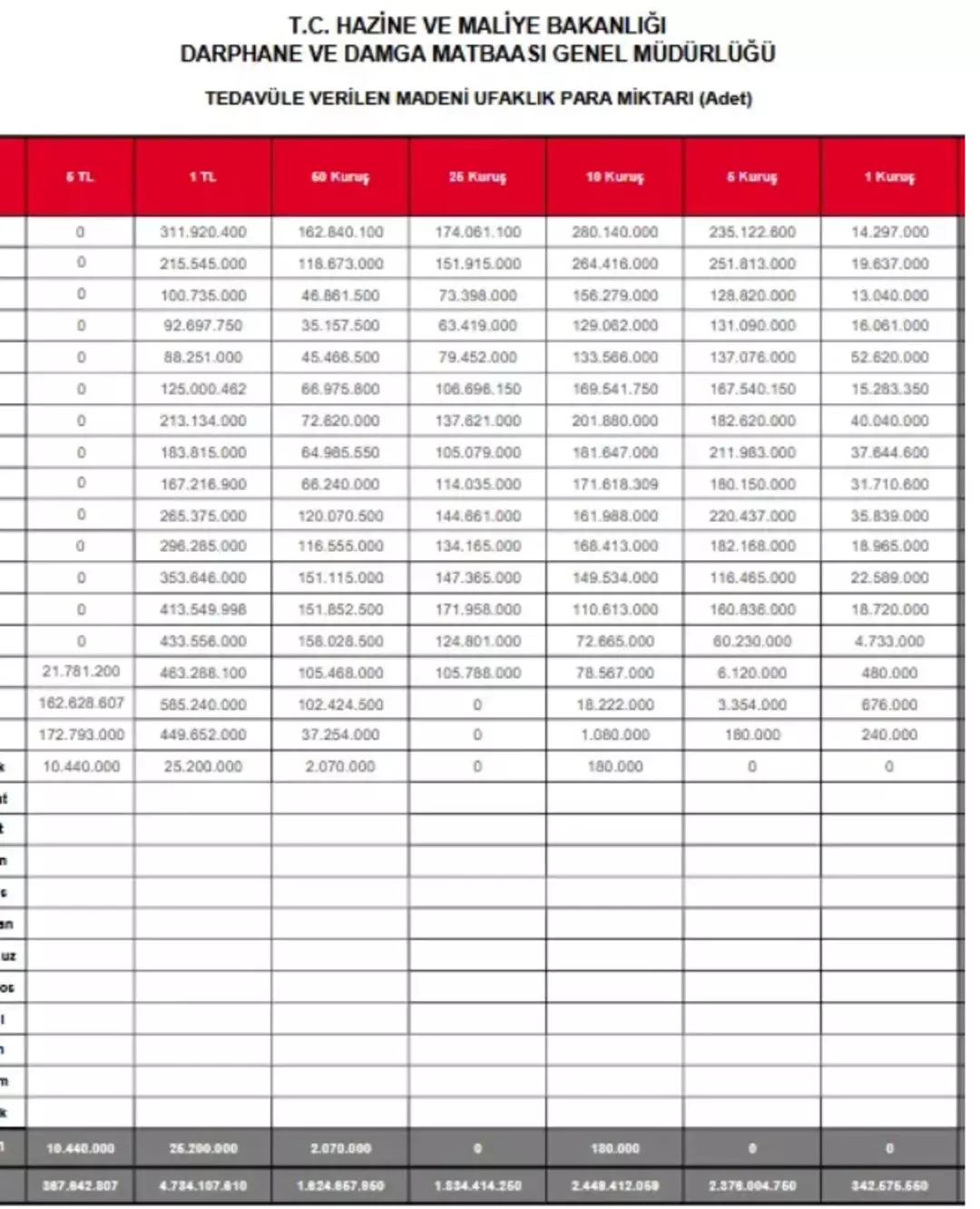 Darphane ve Damga Matbaası Genel Müdürlüğü, 2026 yılı başı itibarıyla 1 kuruş ve 5 kuruşluk madeni paraların basımını tamamen durdurdu.